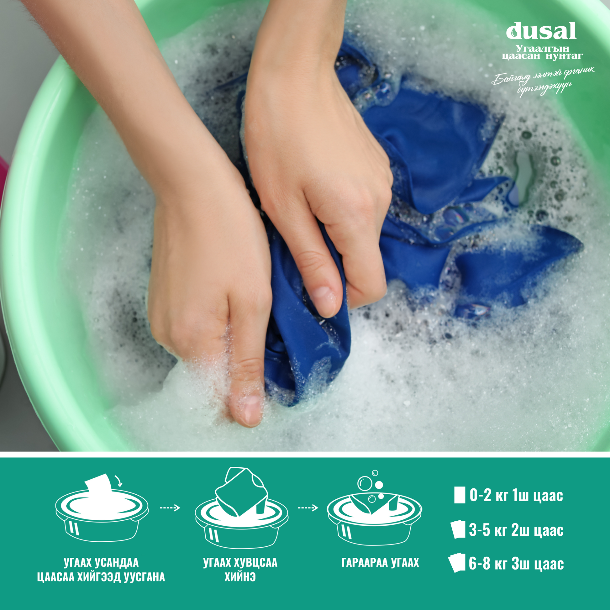 алхам 2 - угаалгын цаасаа угаах гэж байгаа хувцас дээрээ тавина