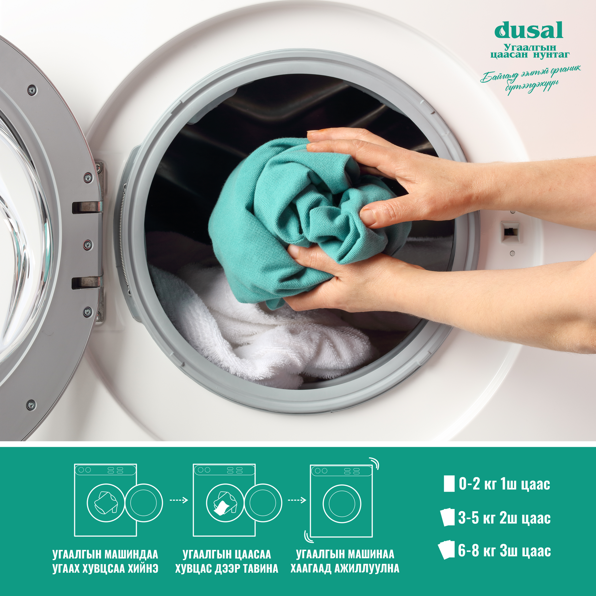 - Цагаан, хар, өнгөтэй бүх төрлийн хувцас угаахад тохиромжтой тул угаалгын нунтгийг зориулалтаар нь тусад нь худалдаж авах шаардлагагүй